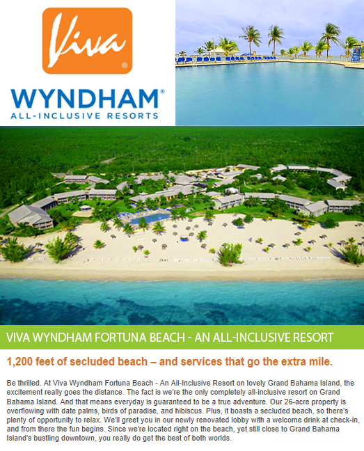OR3 Days & 2 Nights on Grand Bahama Island at the ALL INCLUSIVE Viva Wyndham Fortuna Beach . AND YOUR CHOICE OF: